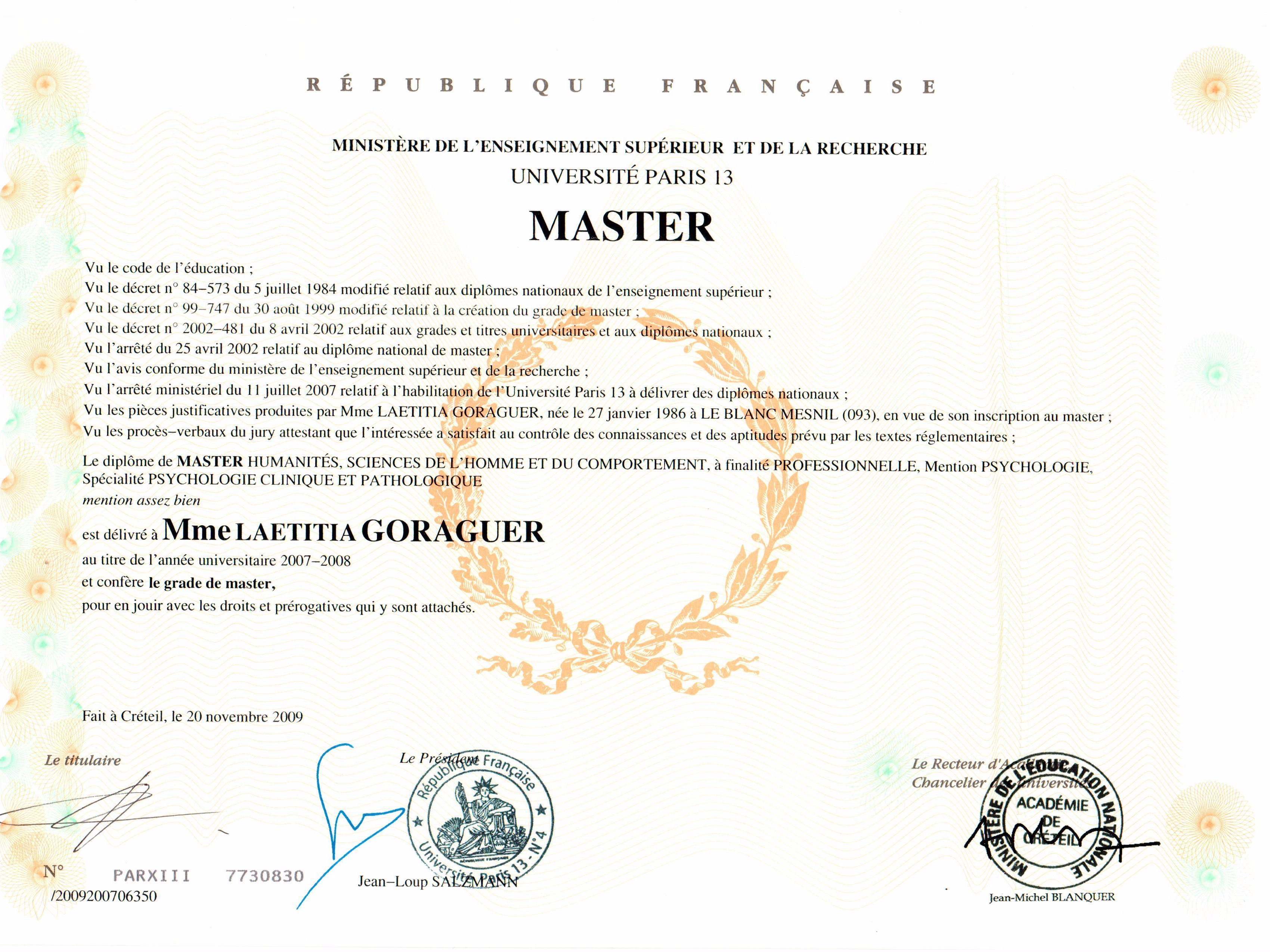 Mon goût pour le contact, mon sens du service et mon ouverture d'esprit m'ont conduit à poursuivre un cursus passionnant en psychopathologie clinique et en psychopathologie à l’université Paris 13. Durant 5 années d'étude et de stages j'ai acquis des repères solides sur la construction du psychisme humain et son développement, la diversité de ses manifestations, la souffrance morale et comment lui apporter un soin.